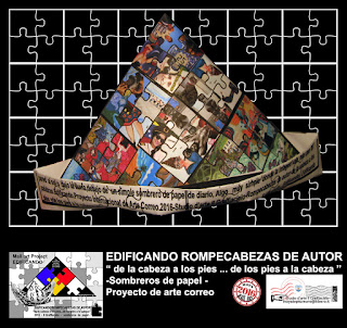 Hacer un rompecabezas de autor para despues realizar un sombrero de papel con las imagenes combinadas de todos ustedes, es realmente una grande empresa y compromiso.pero EDIFICANDO se trata principalmente de esto, de construir imagenes, pensamientos, realidades, frustraciones,ideas, de compartir experiencias y tratar de seguir EDIFICANDO..a pesar de todo y gracias a las ideas de todos, el entusiasmo, el sentido lùdico y la gran sorpresa de tener en algun lugar del mundo un sombrero de papel, simplente un sombrero de papel....Es un proyecto que nace colectivo , donde la esencia es construir juntos, sin protagonismos, donde todos compartimos y proyectamos.Esta es la idea principal.El resultado es la Instalacion Colectiva de todos los proyectos de EDIFICANDO que curo con gran dedicacion-El Rompecabezas es una etapa de este proyecto donde la esencia es crear un sombrero de albanil combinando diferentes piezas, y seguir participando creando, en el sentido ludico del arte..ese sentido para algunos "absurdo"...para mi el caotico- natural del creativo sin limites....de la cabeza a los pies y de los pies a la cabeza.Asi..como un sombrero de papel de diario que a veces se tranforrma en barquito de papel…..donde la imagen vale mas que mil palabras-